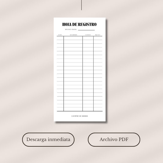 Hoja de REGISTRO MINIMALISTA